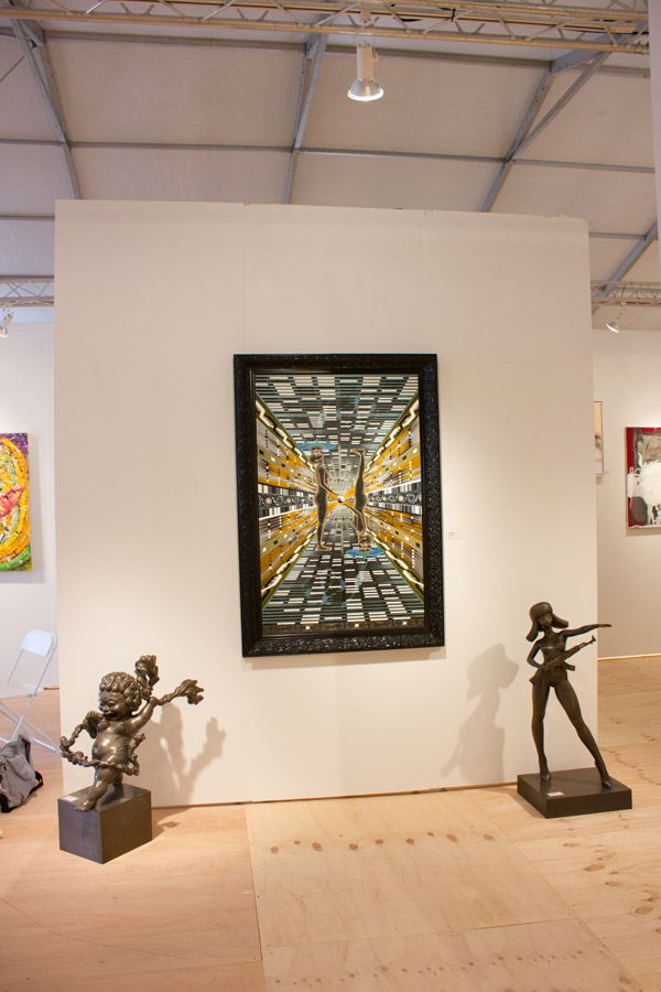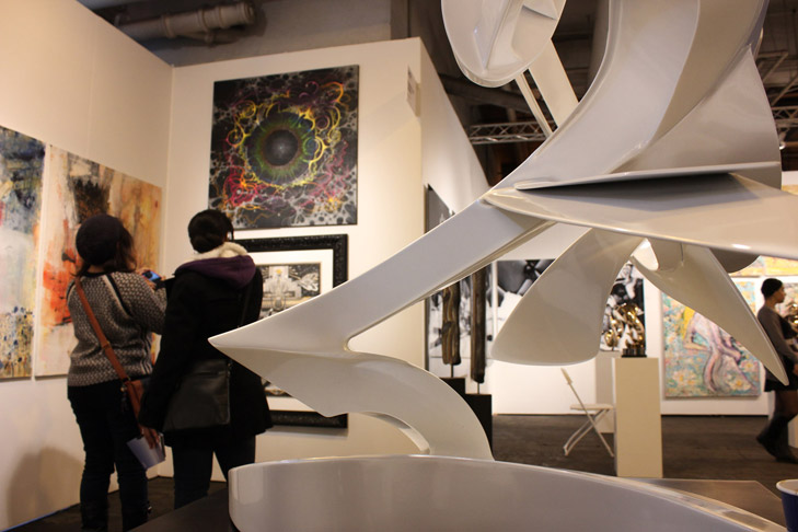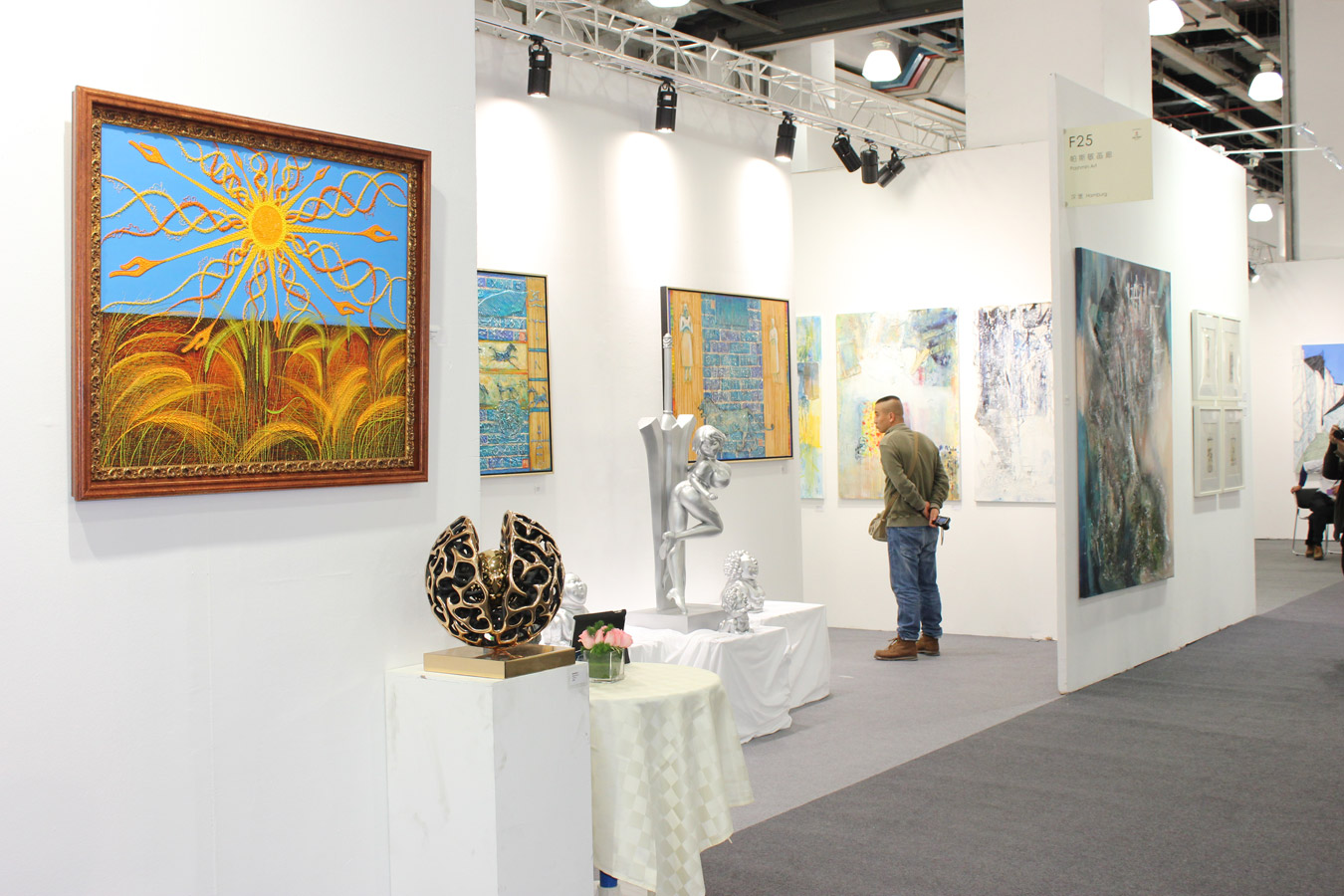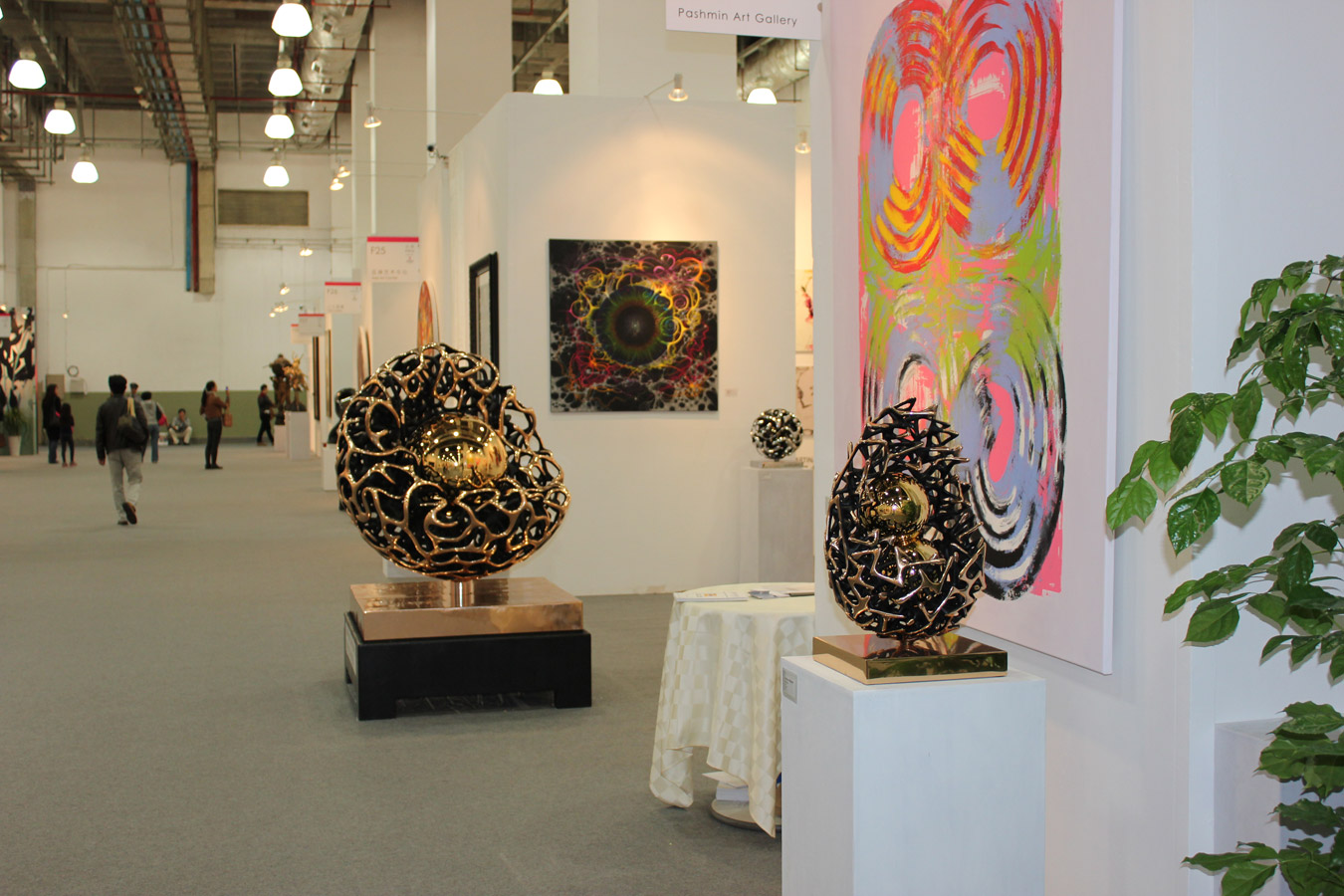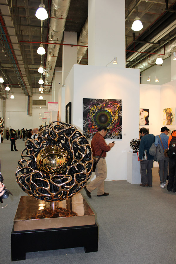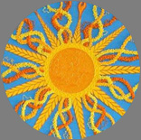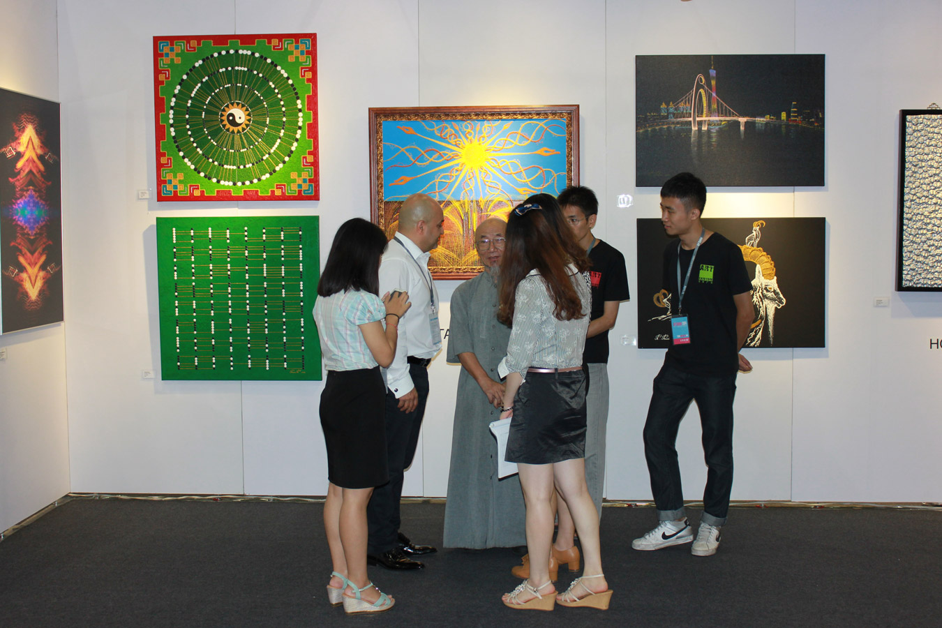 Mehrfach zitiert sie die genetische Kette, um darzustellen, auf welch verschlungene und unauflösliche Weise der Ursprung des Menschen mit der Natur und mit dem ganzen Kosmos verbunden ist. Auch wenn es sich um größere Formate handelt, arbeitet sie mit millimetergenauer Exaktheit. Nichts bleibt dem Zufall überlassen, auch das kleinste Detail wird zur sinnvoll gestalteten Miniatur.